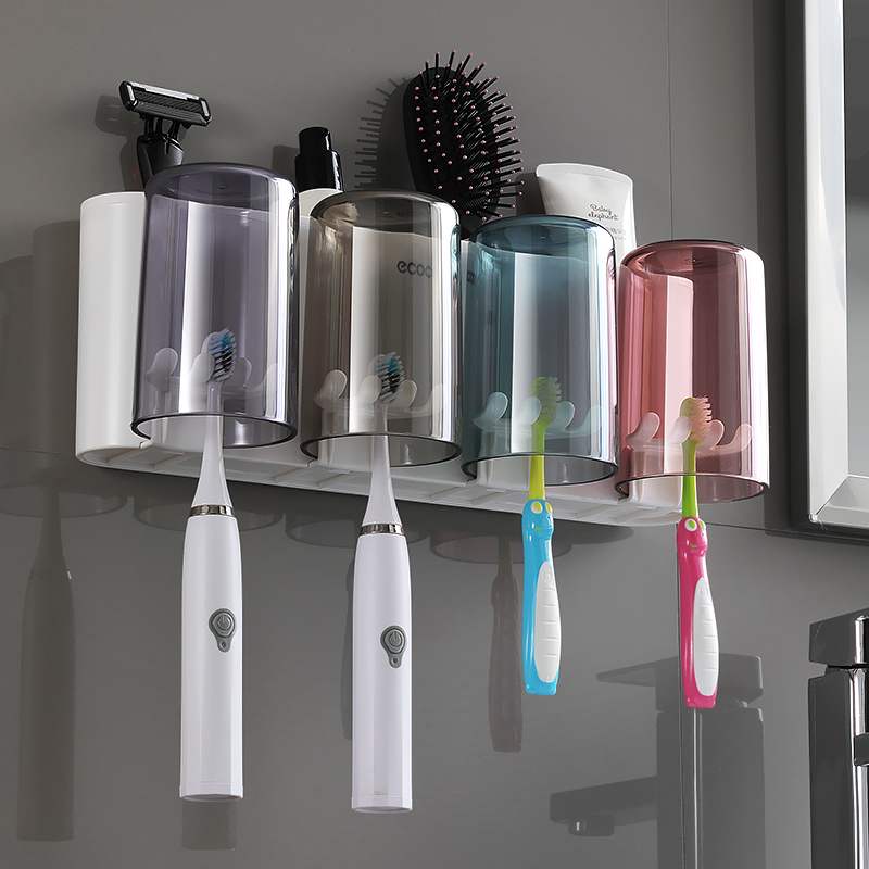 Mouthwash cup set combination Family toothbrush cup Tooth storage rack Powder room tooth cylinder cup hole-free wall-mounted