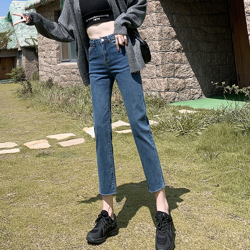 Black straight loose jeans women's spring and autumn 2021 New High waist slim eight points nine pipe pants