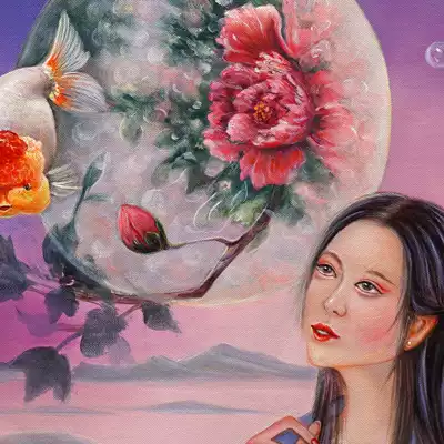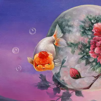 Sun Zhonghai "Fish's Reverie"Realistic oil painting on canvas Collection Oil painting living room decoration painting