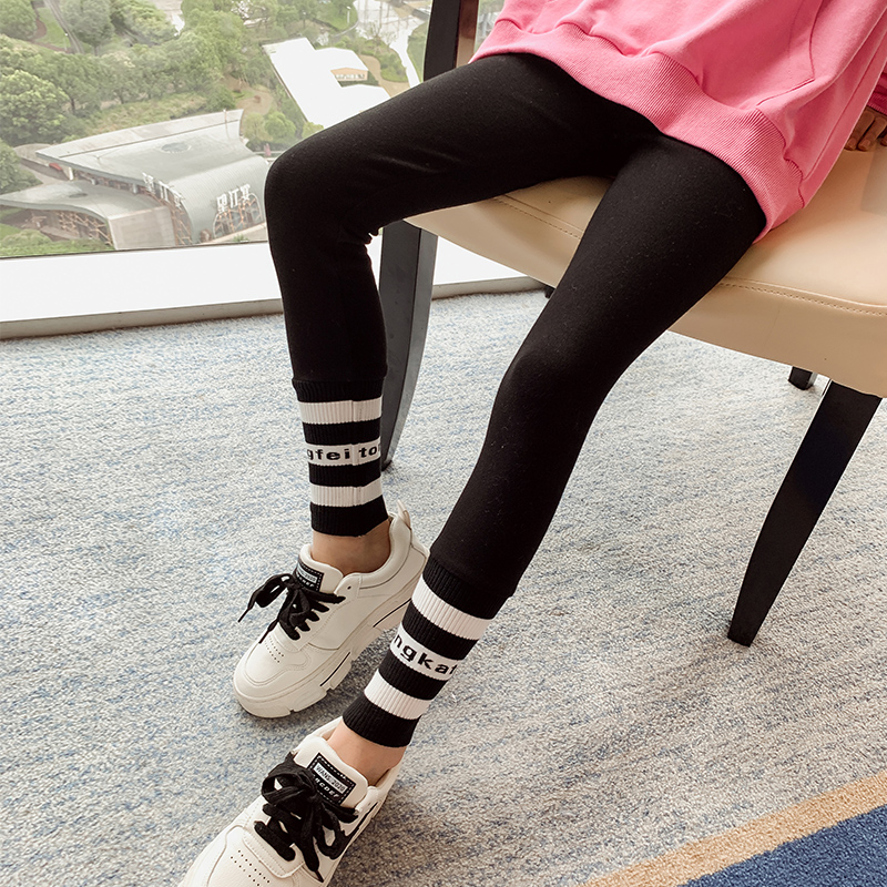 Tide brand girls solid-colored underwear port wind big children plus velvet new foreign pants children casual narrow-legged pants