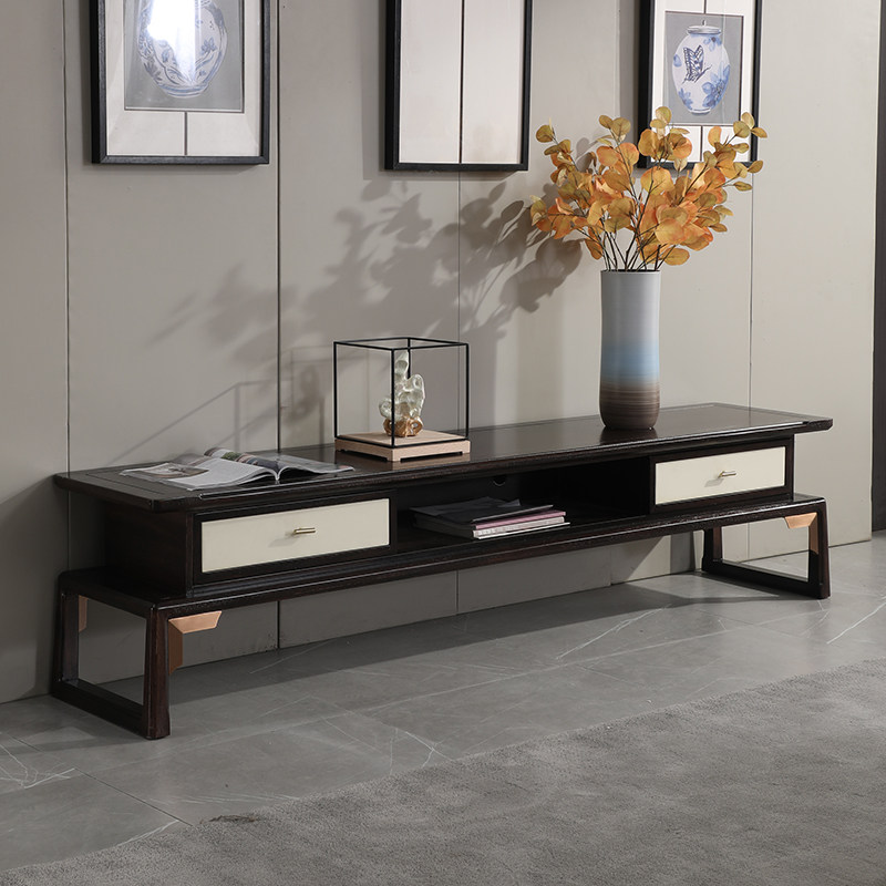 New Chinese style solid wood TV cabinet Zen light luxury large and small ash wood locker modern floor cabinet living room furniture