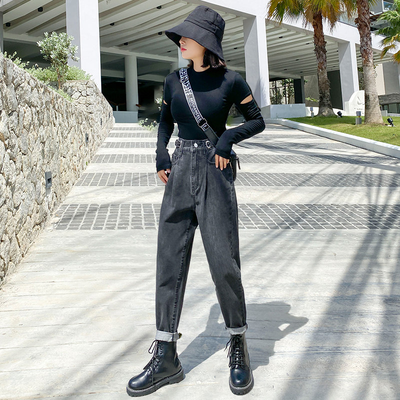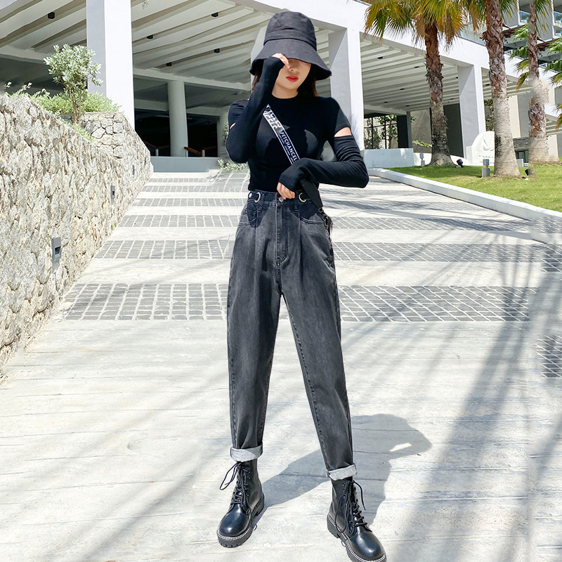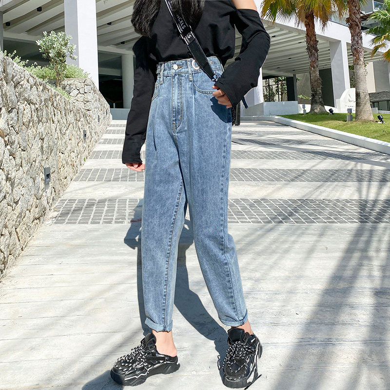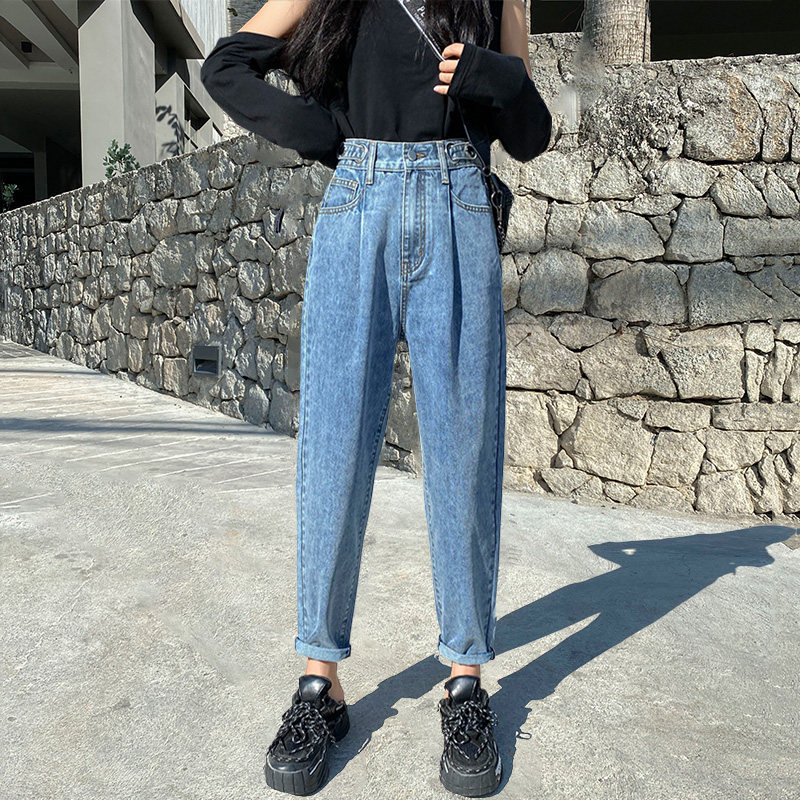 High waist jeans female old Daddy loose with slim 2022 new 90% wide legs Harlan pants 90% Roof straight drum