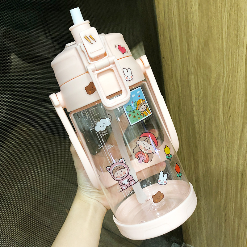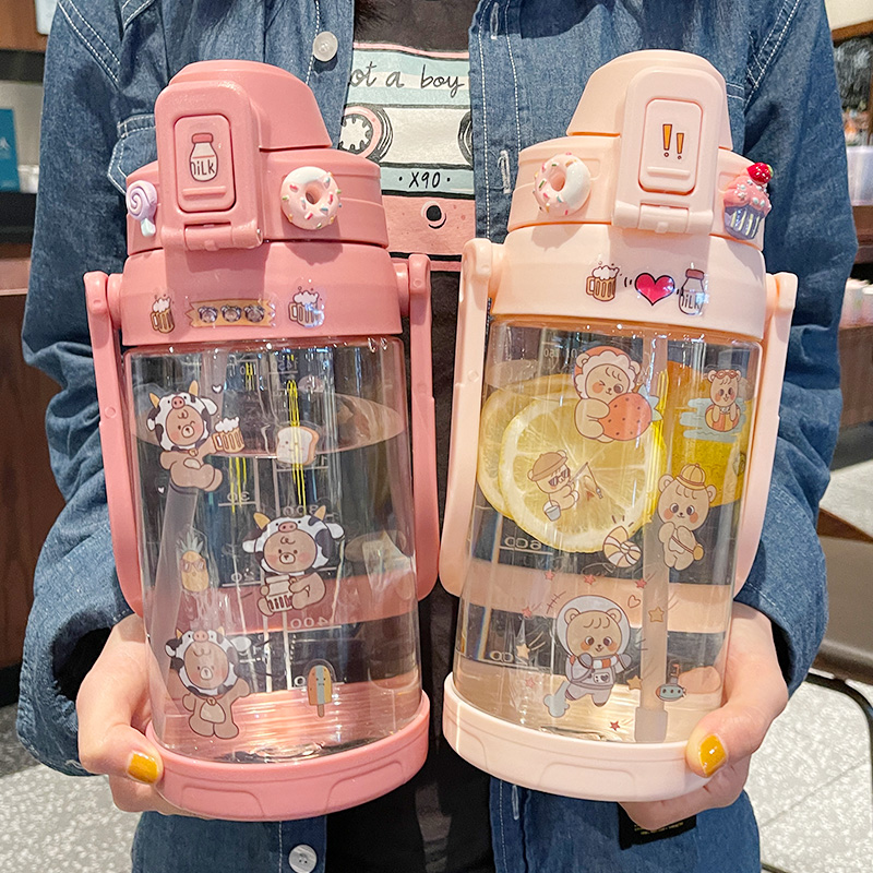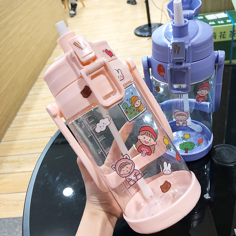 Super large capacity sports water cup Women's summer fitness plastic cup with straw net red large kettle portable water bottle