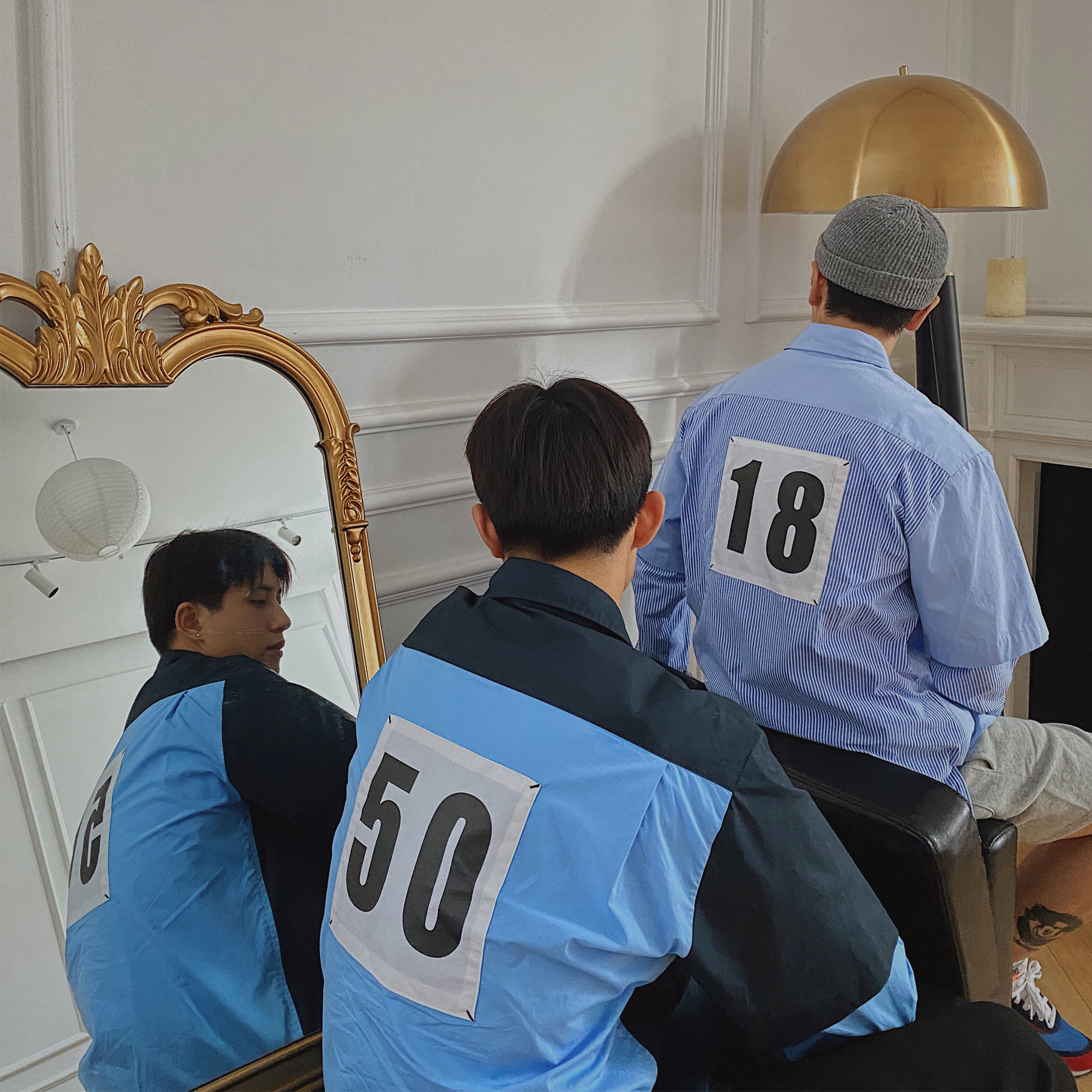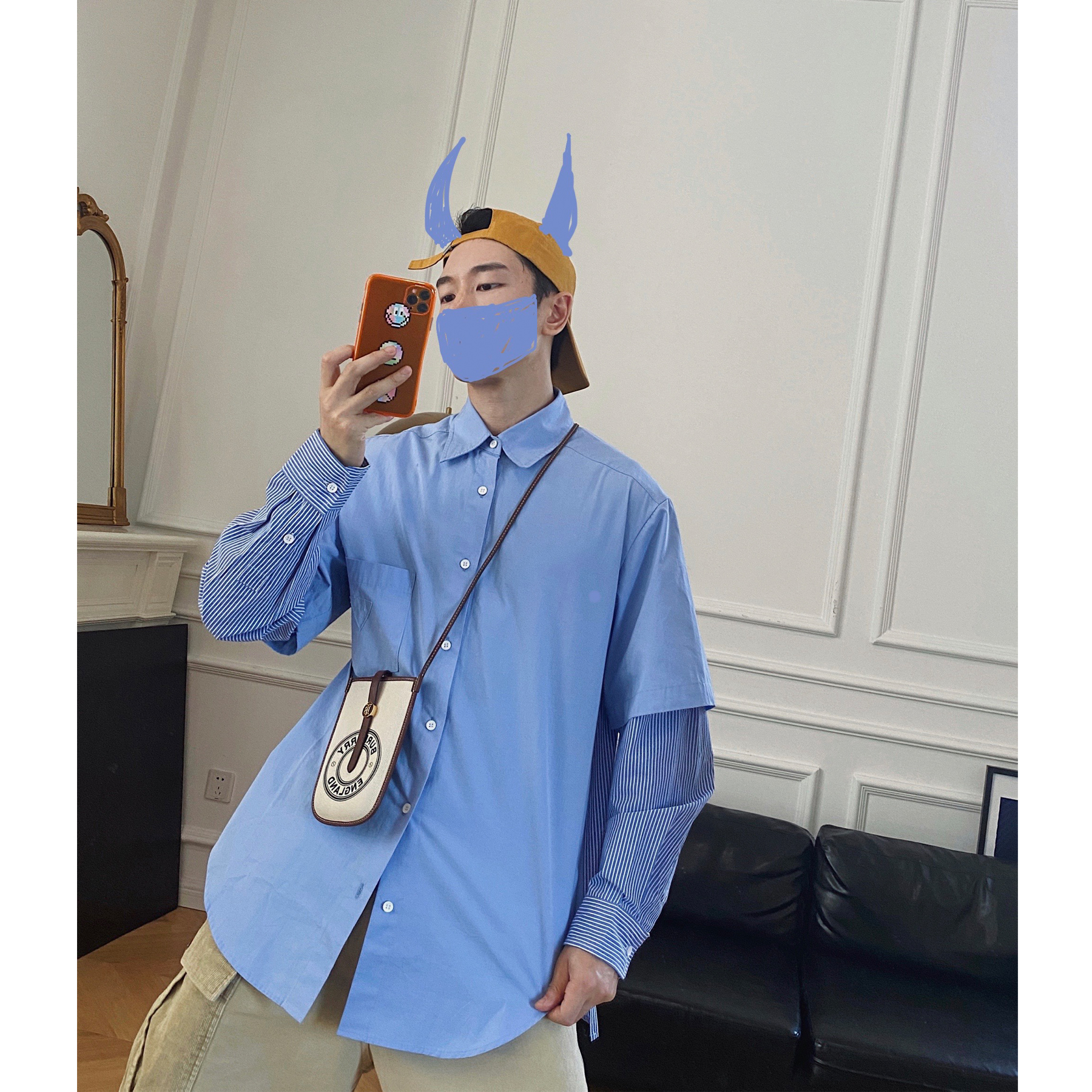 24KHOMME personality deconstruction splicing fake two digital long sleeve shirt men's stripes loose trend Korean