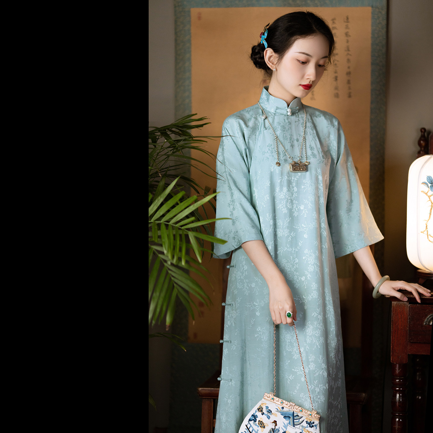 Jasmine-spring and summer autumn style Chinese style Republic of China Antique Jacquard Converse Large Sleeves Traditional Loose Qipao Young to Daily Routine