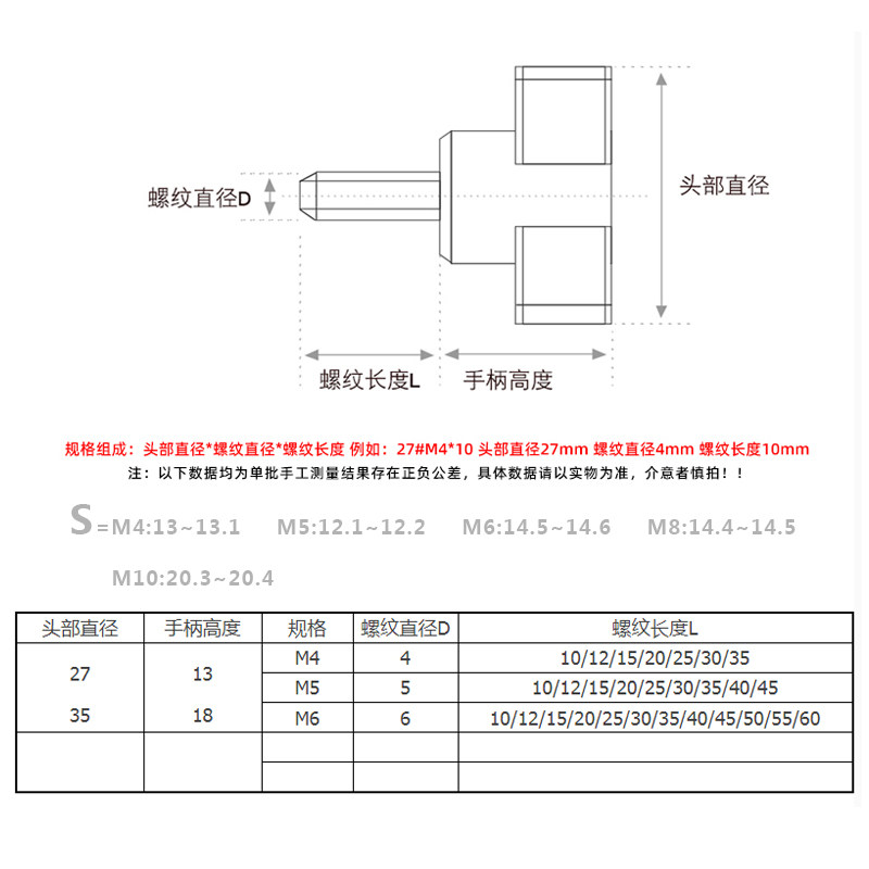 304 stainless steel word-in-hand screw T shaped handle screw plastic head rubber wood knob handle bolt screw M6