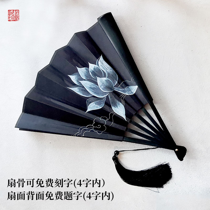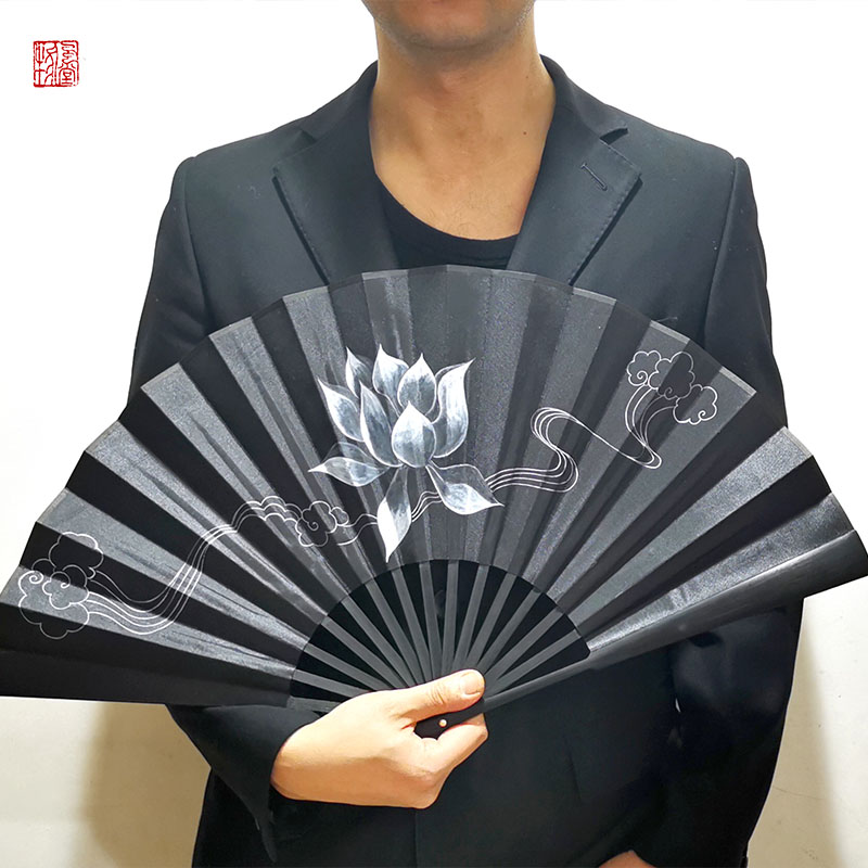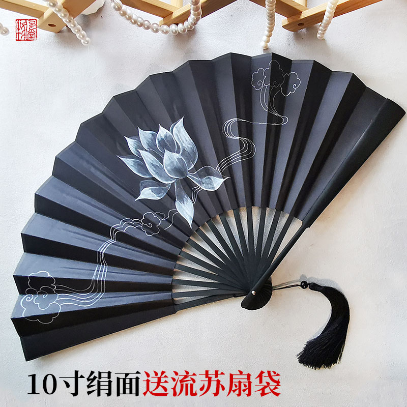 Chinese ancient style Han cloth fan folding fan 10 inches north of the ink dye Xiao War around the same fan black gold ink ink ink - gold ink ink - gold ink - gold ink - gold ink - gold ink - dyed ink - dyed ink - dyed circle