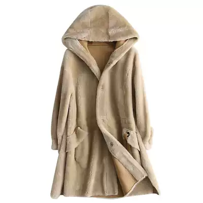 Soft and delicate Merino sheep fur all-in-one women's casual hat lamb fur grass jacket medium and long version hooded