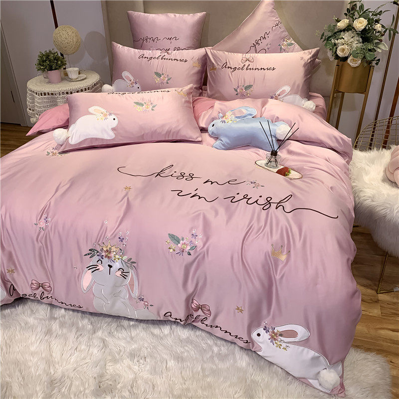 The four - piece Princess sheets on a cute cotton bed are set for 1 5m18 m sand bed