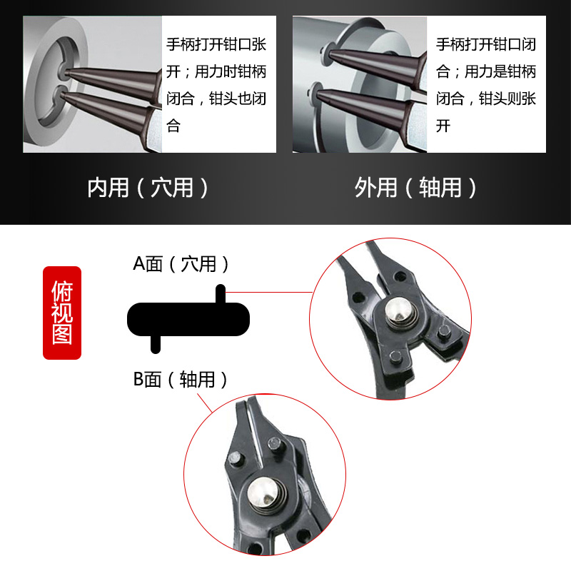 Four-in-one multifunctional snap ring pliers four-head C- shaped buckle ring pliers spring spring clamp shaft disassembly for internal and external use