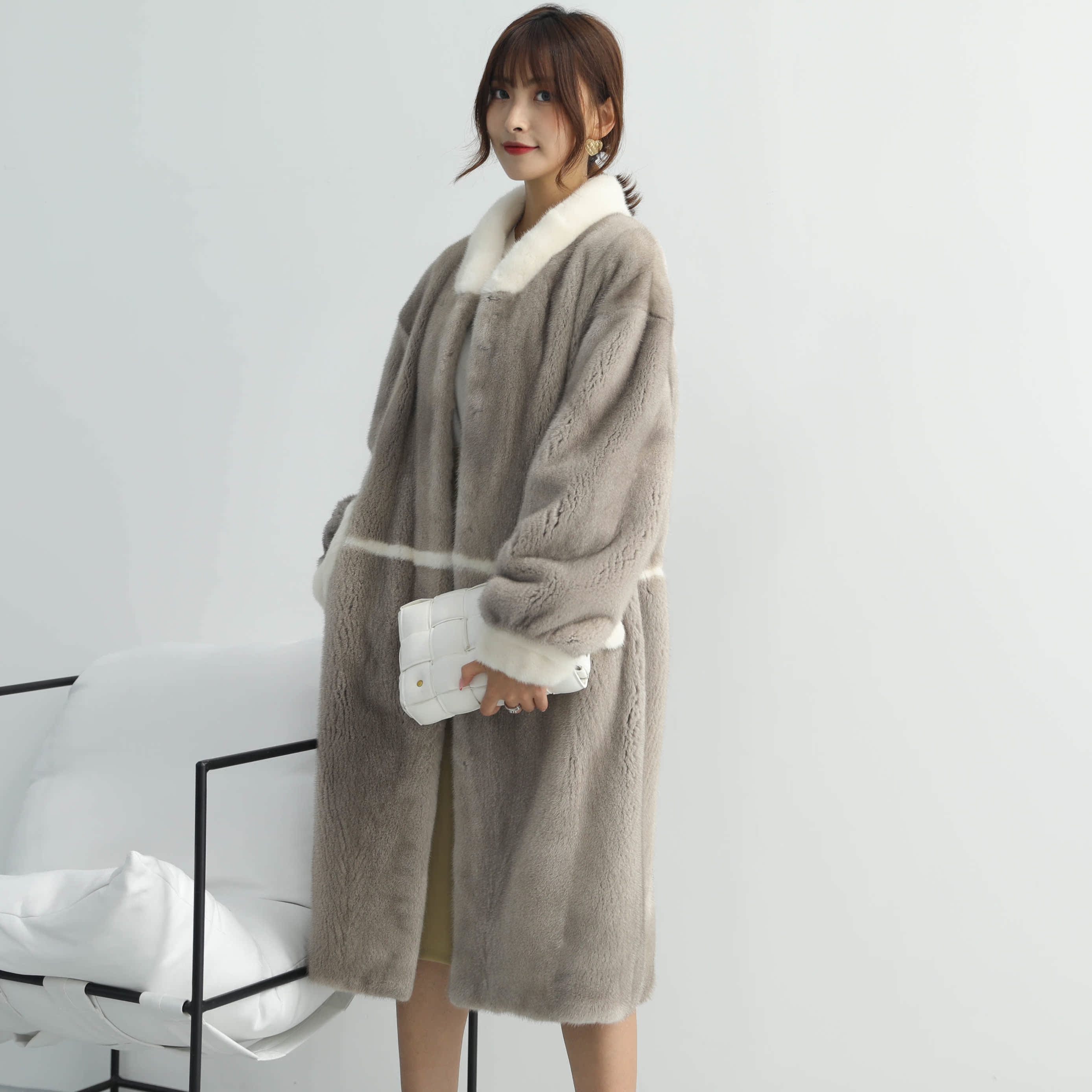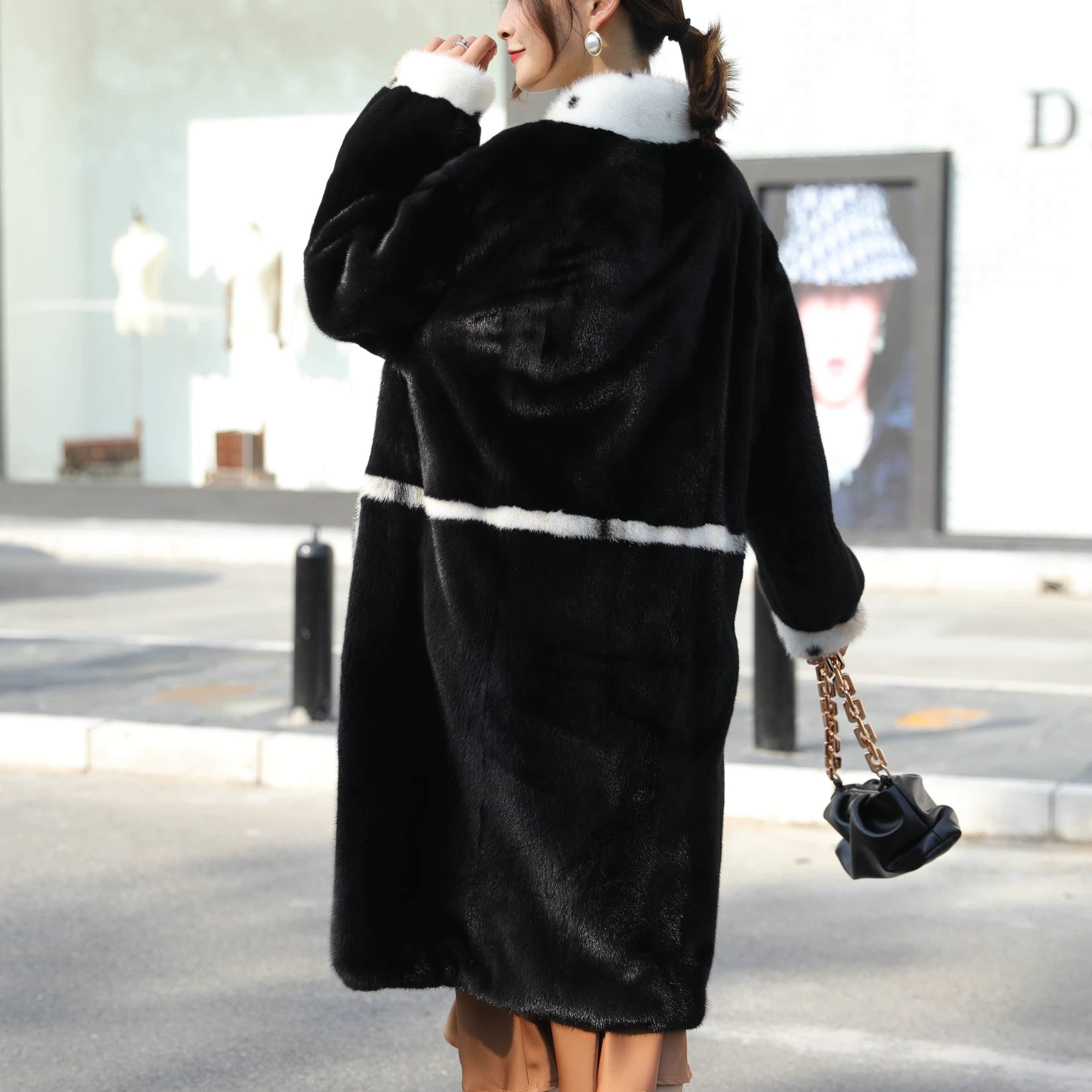2021 Winter new imported cross mink coat female whole mink medium long version velvet mink fur coat