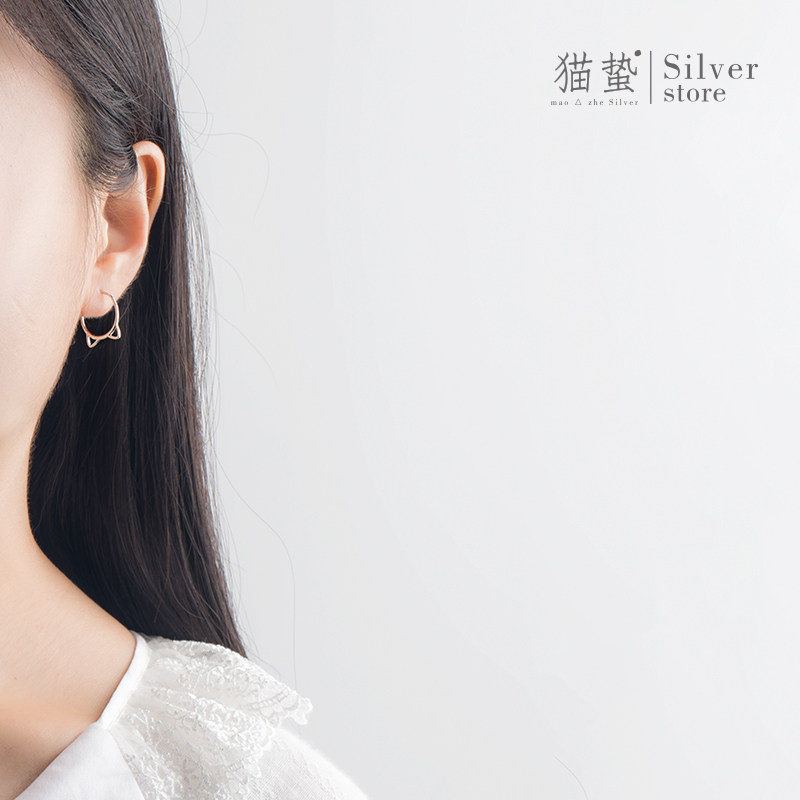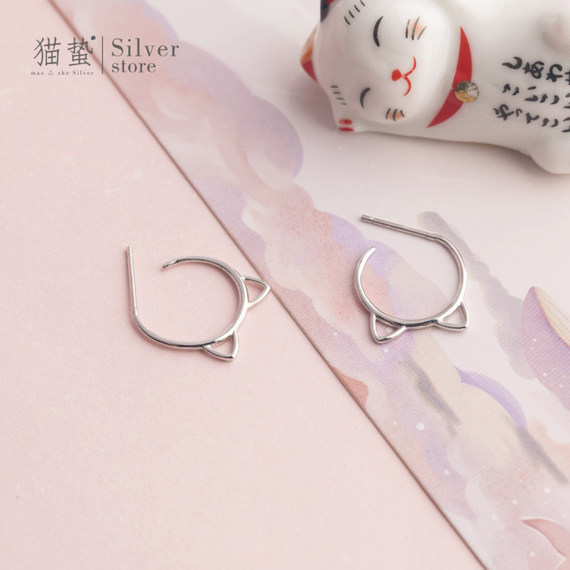 Cat Jellyfish S925 Pure Silver Kitty Earrings Woman Cute Fresher Brief about 100 Lapped Lukewarm Wind Superior Ear-Ear Accessories