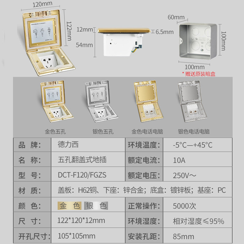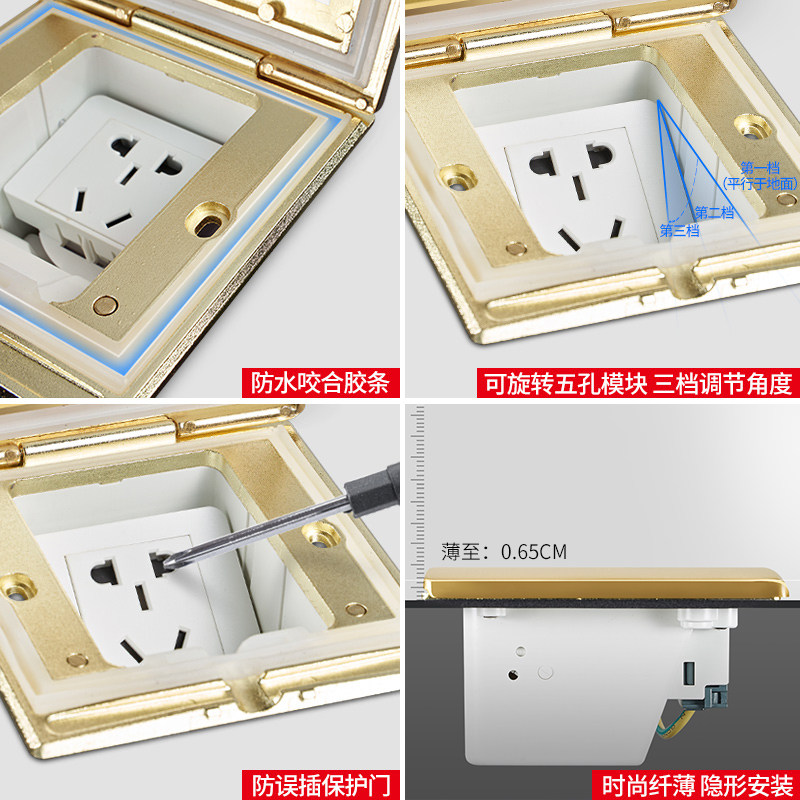 Dresy ground socket full copper waterproof 5-hole unobstructed ni concealed 5-hole ground floor floor socket to insert home-Taobao
