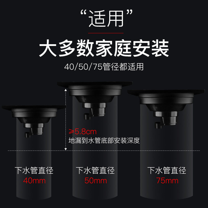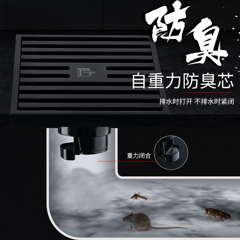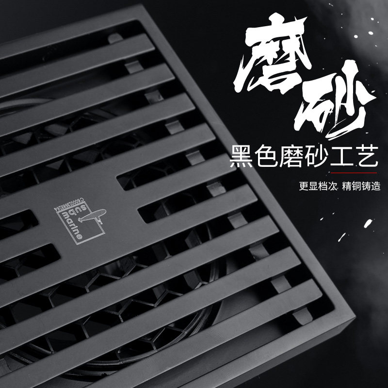 Submarine black all-copper floor drain ultra-thin invisible large-displacement rectangular deodorant dressing room washing machine dual-use