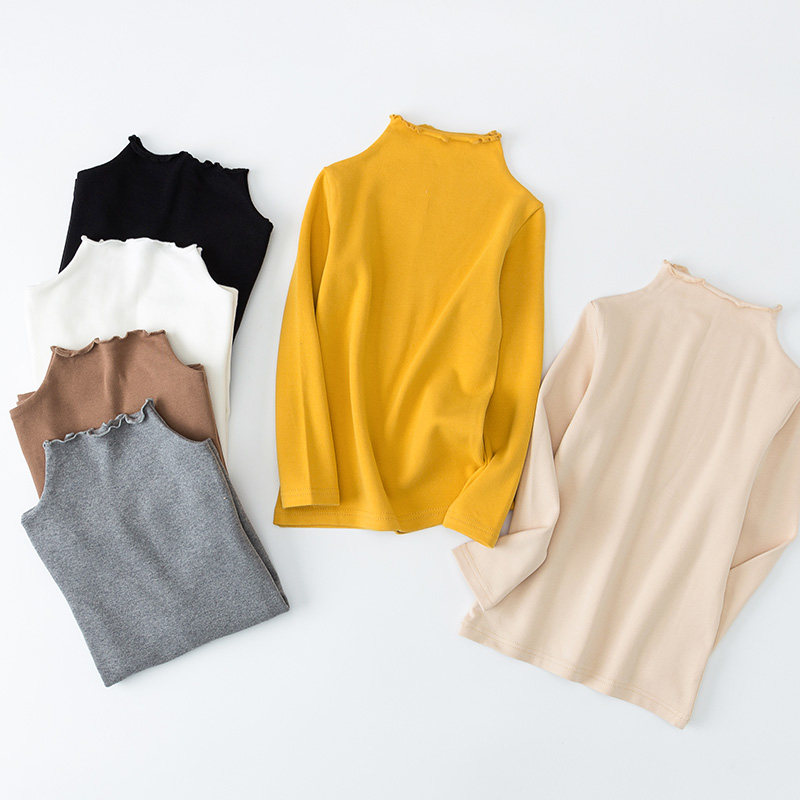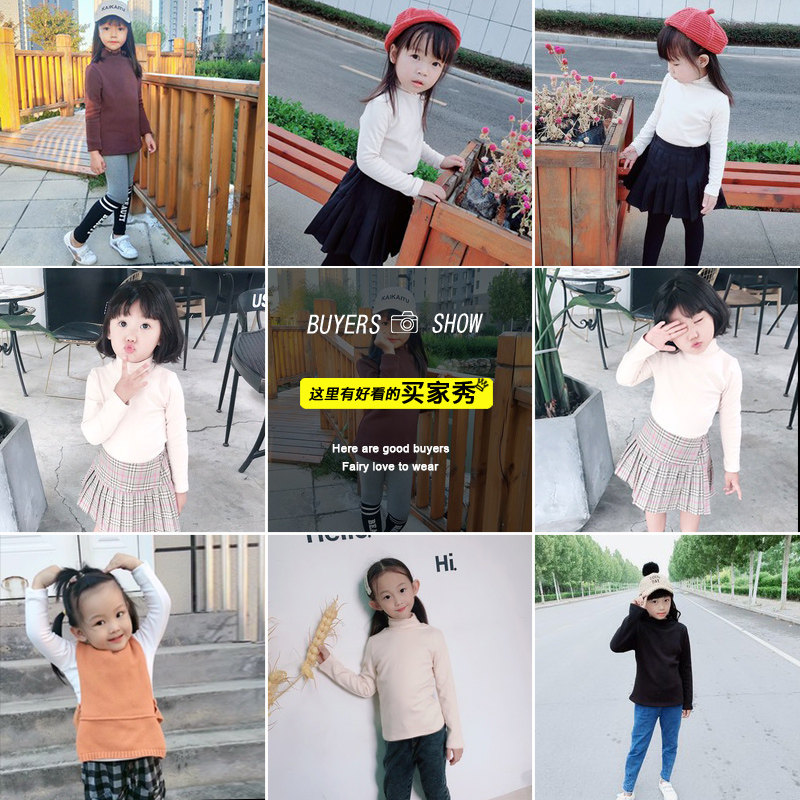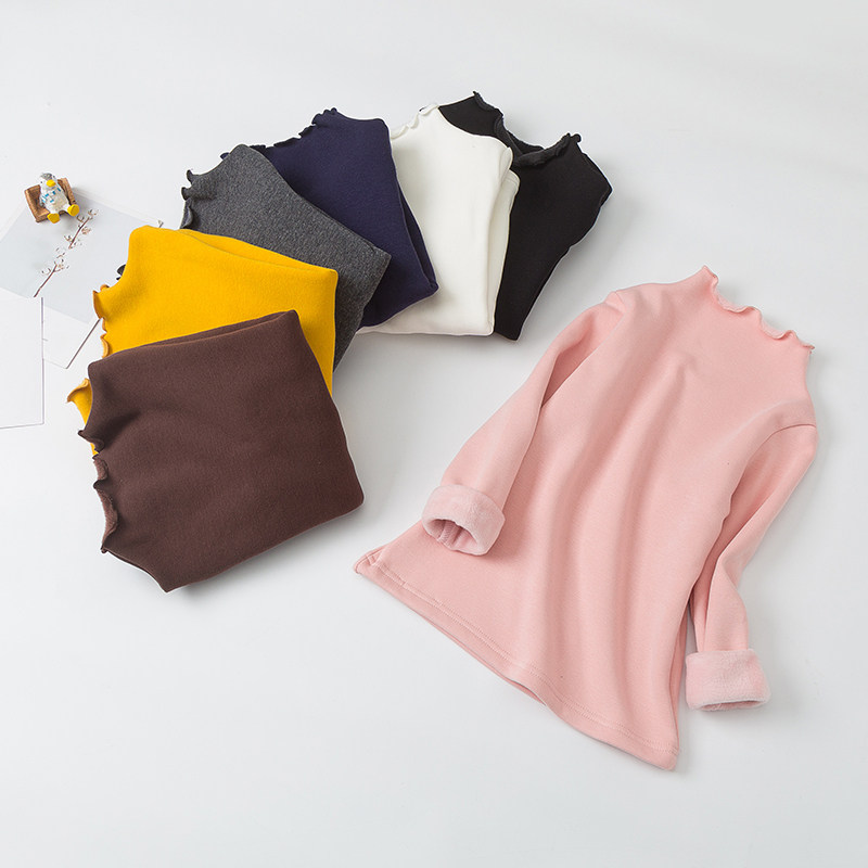 Girls' high collar bottoming shirt autumn and winter baby plus velvet thickened children's black middle and big children's white top for spring and autumn