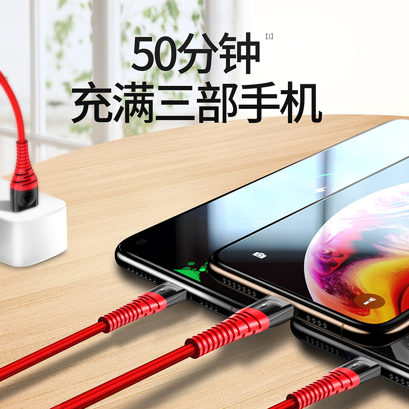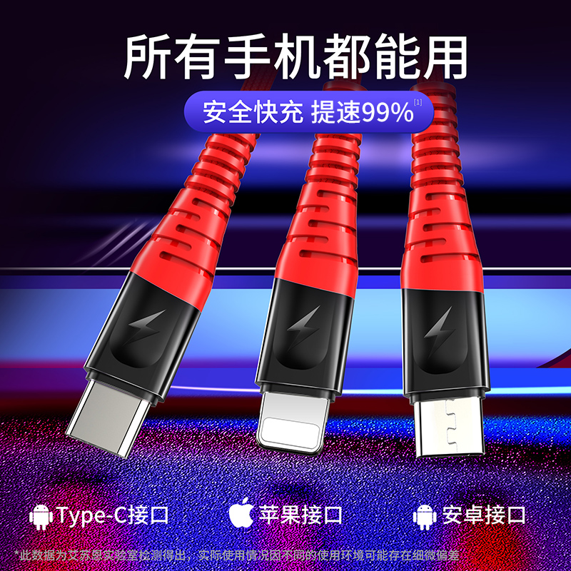 Data line three-in-one charging cable fast charge one drag three mobile phone suitable for Apple two-in-one drag multi-purpose function multi-head Android car three-head three-line 5a rush 3 car with three-purpose lead 2 meters