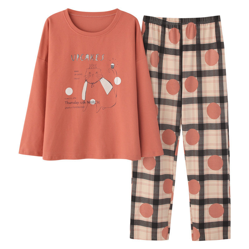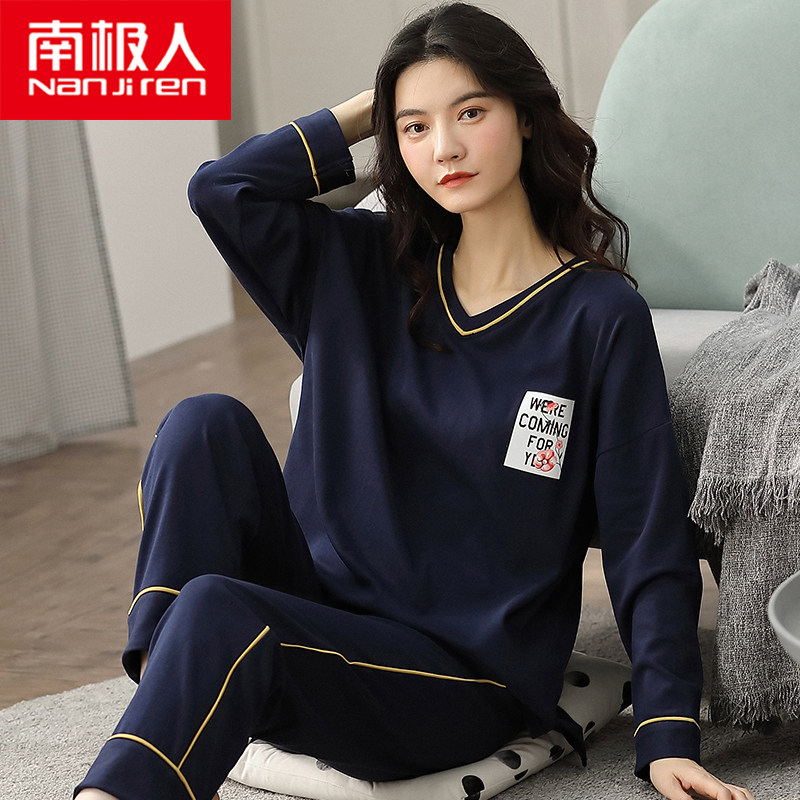 Antarctic pajamas women spring and autumn cotton long-sleeved pullovers plus fattening plus size can be worn outside the autumn and winter homewear set