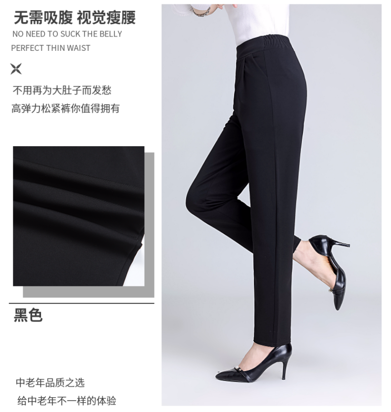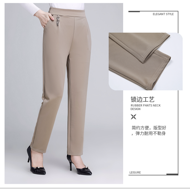 Middle-aged and elderly mother pants spring and autumn women's trousers high waist elastic loose straight outer wear middle-aged summer women's trousers