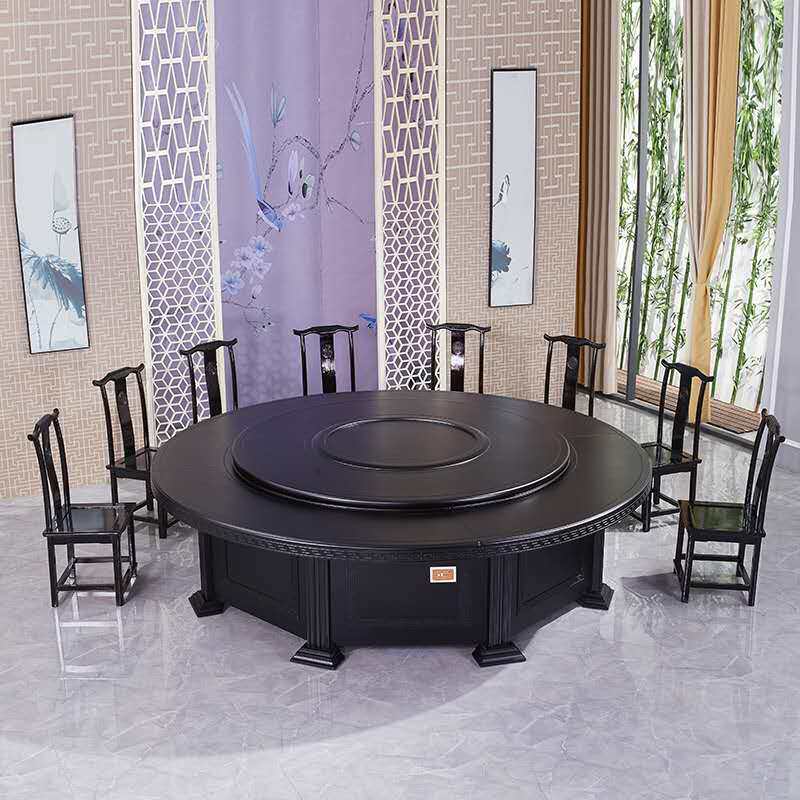 New Chinese-style hotel electric dining table large round table 15 people modern hotel solid wood 20 people dining table automatic rotating turntable