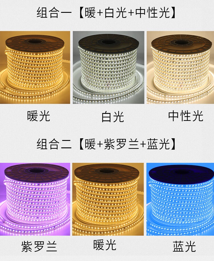 LED light with three-color changing light soft light strip indoor suction ceiling lamp with 220v bright outdoor waterproof double-row strip lamp