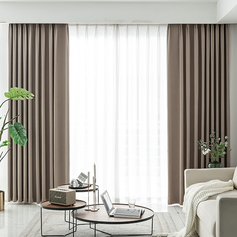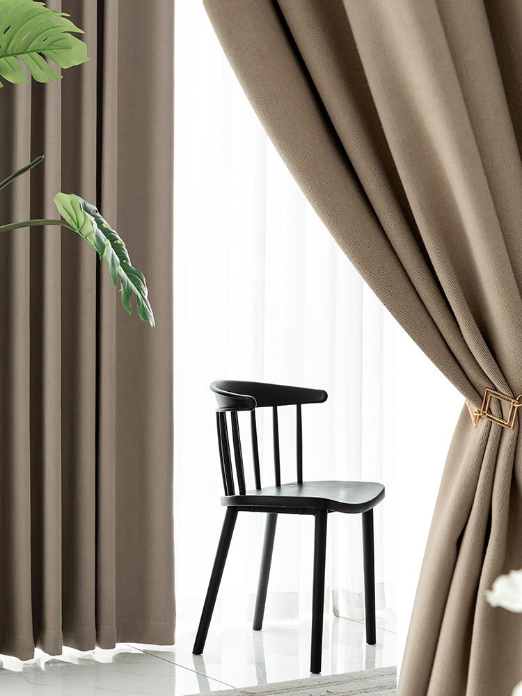 Nordic simple and modern 2021 new custom solid color cotton and linen light luxury wind blackout curtains bedroom living room bay window