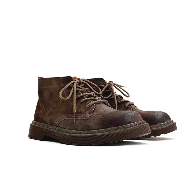 Autumn Winter in Gang Overalls Internet Red Martin Boot Male Shoe Inn Wind Low Gang Retro Soft leather Short boots Genuine Leather Tide Shoes