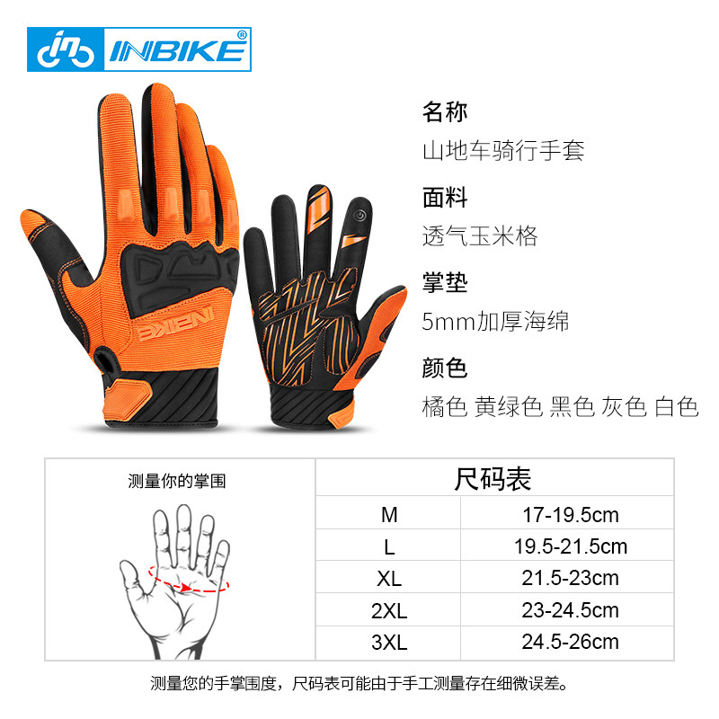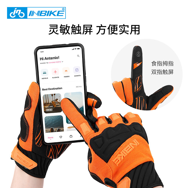 INBIKE cycling gloves full finger breathable touch screen long finger anti-slip soft palm pad bicycle mountain men and women spring and autumn