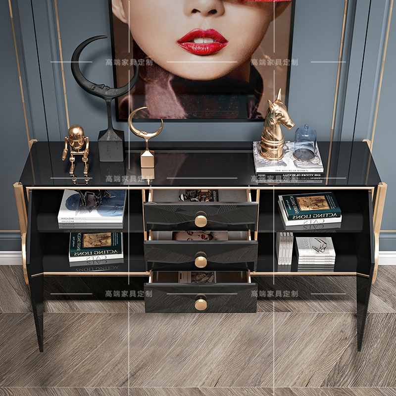 Light luxury porch cabinet modern minimalist dining cabinet dark green paint decorative cabinet American solid wood shoe cabinet storage cabinet