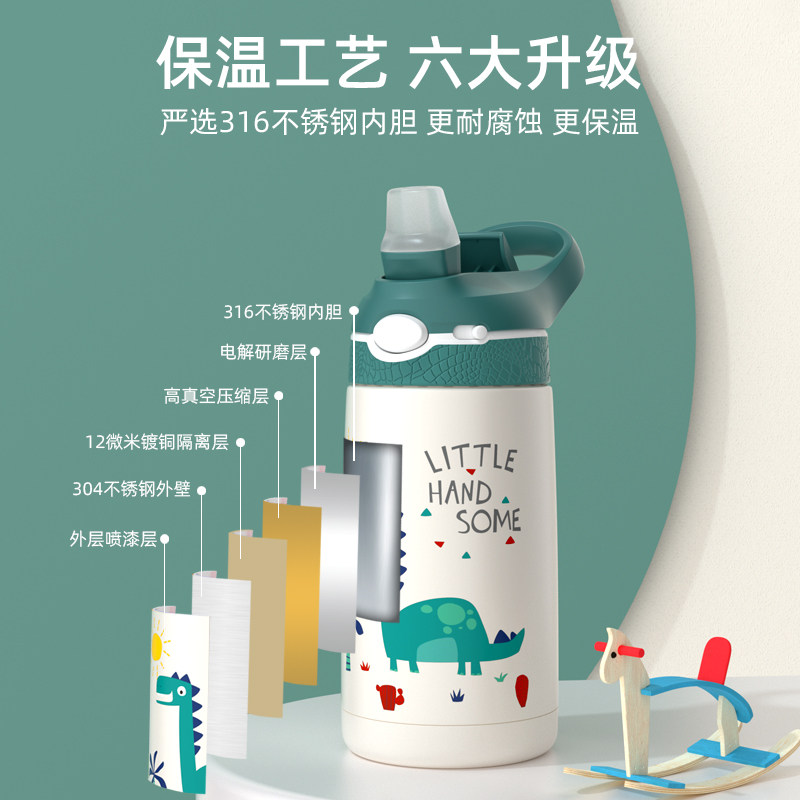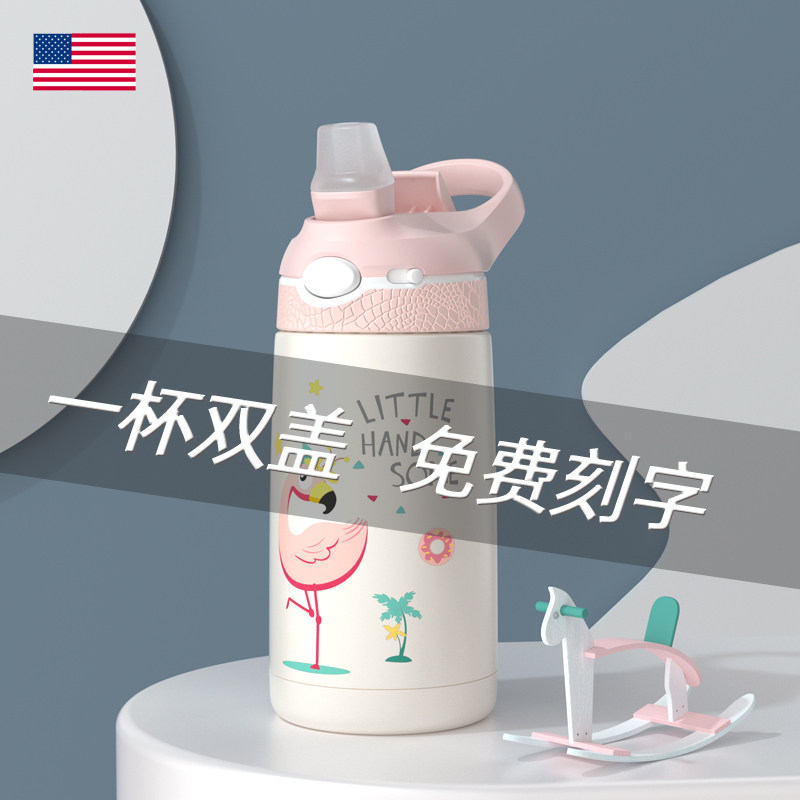 Qibao Children's thermos cup with straw cup Baby portable kindergarten drop-proof primary school students and men's and women's kettles customized