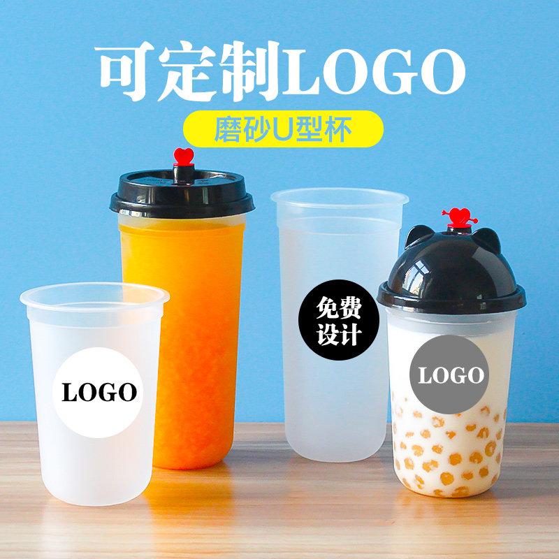90 caliber frosted injection U-shaped fat cup with lid set with straw thickened delivery leak-proof milk tea cup