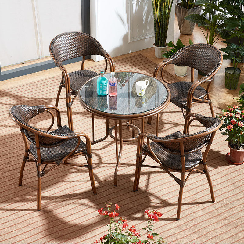 Outdoor Woven Vines Casual Table And Chairs Five Pieces Hotel Clubhouse Hall Cafe Dining Room Table Outdoor Milk Tea Shop Vine Chair