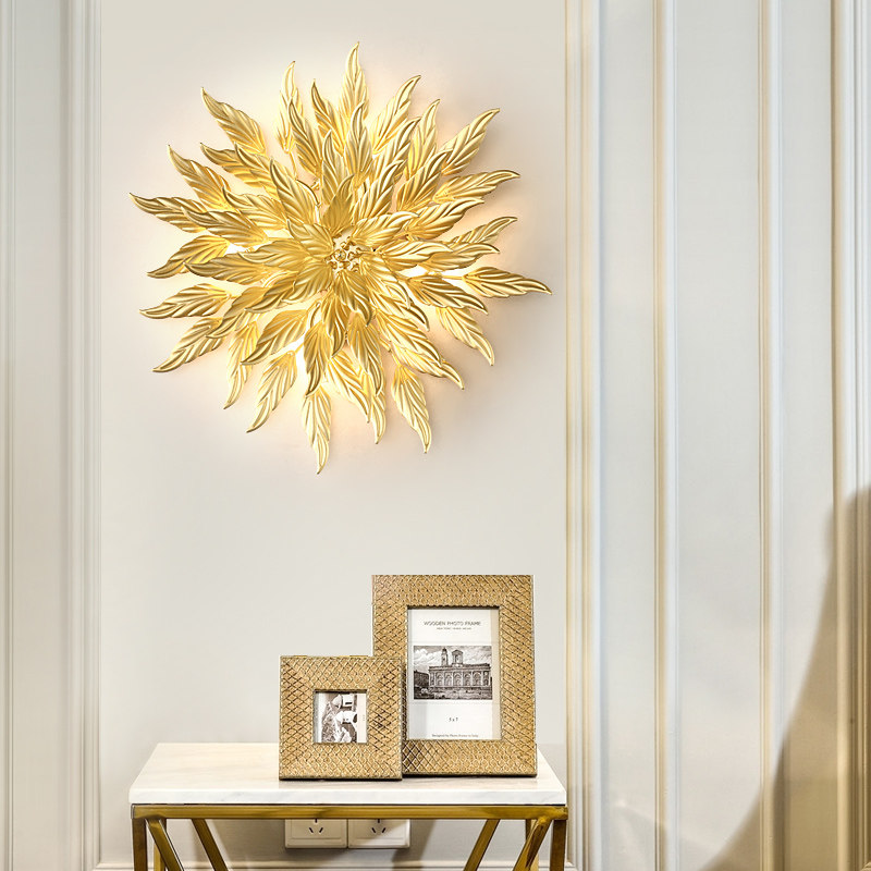 Living room TV background wall creative leaf wall lamp light luxury aisle maple leaf decoration room bedroom bedside stairs