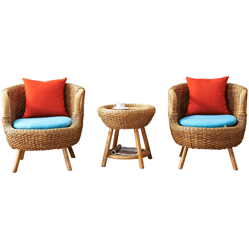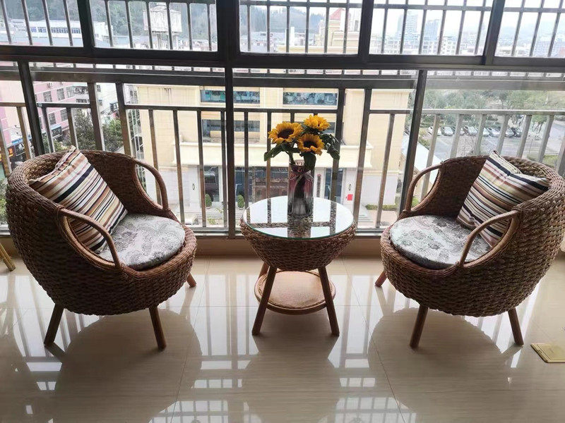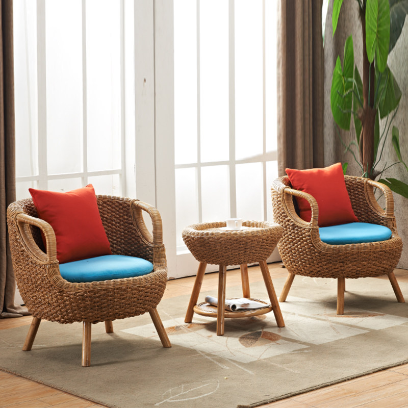 Rattan chair Three sets Balcony Small Table And Chairs Casual Real Rattan Chair Single Leaning Back Chair Tea Table Combined Rattan chair Living room