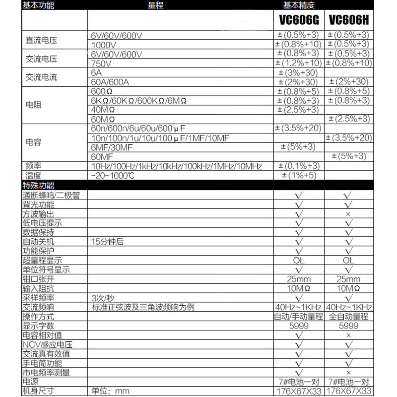 VC606G official standard (automatic range 600AVC606H official standard (automatic shift and volume VC606G standard 20A special tip pen VC606G