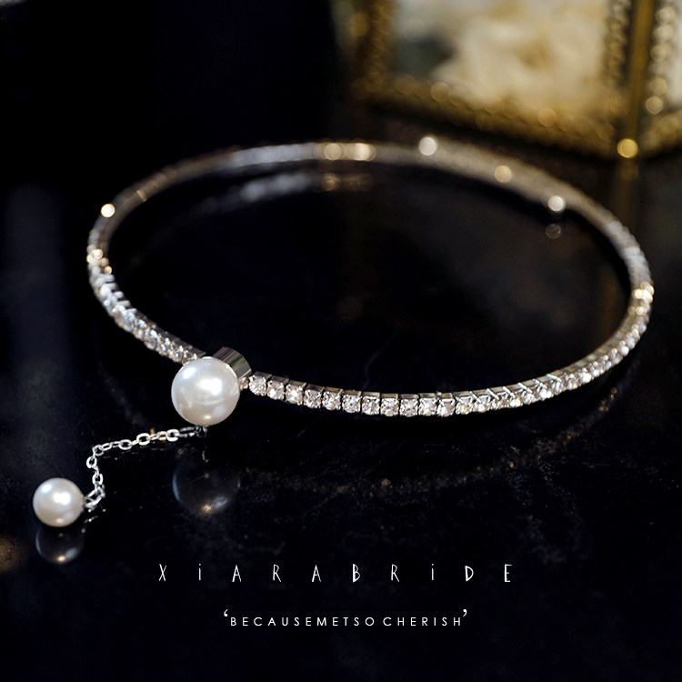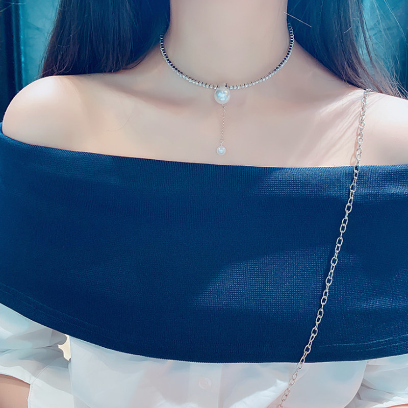 ins shivering small red book the same pearl pendant opening neckline temperament neck with sexy collarbone chain goddess Yuanyuan
