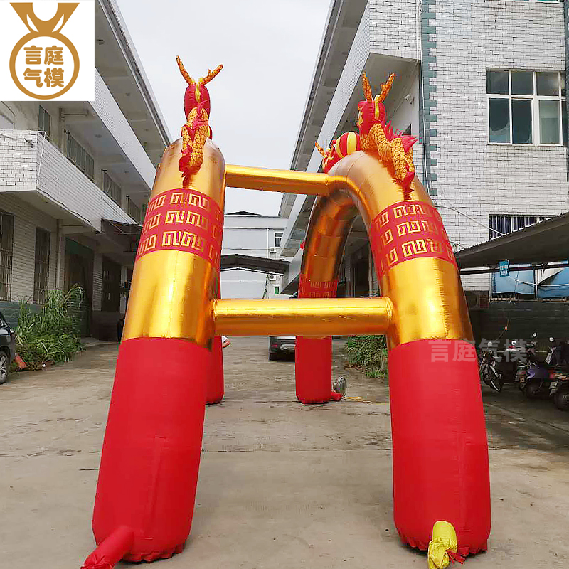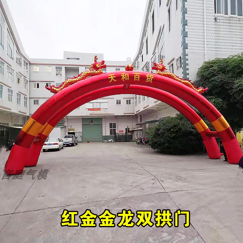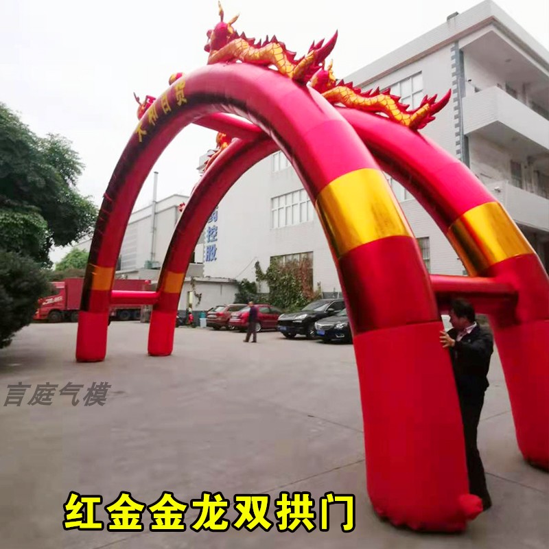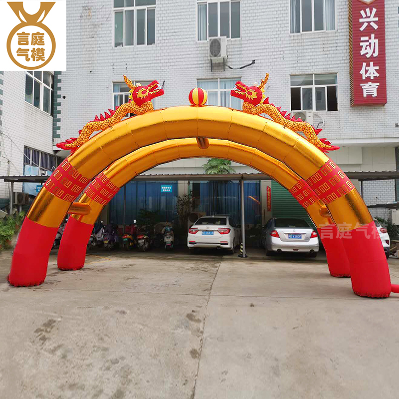 Inflatable golden double body one-piece red and gold double dragon arch dragon and phoenix 8 meters 10 meters celebration opening wedding rainbow door