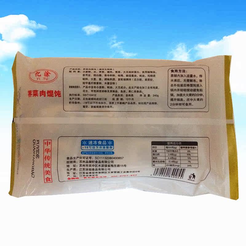 Taste Xuan shepherd's purse meat wonton 240G12 large wonton convenient instant snacks for family dining with commercial ingredients