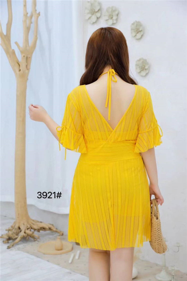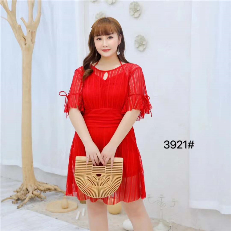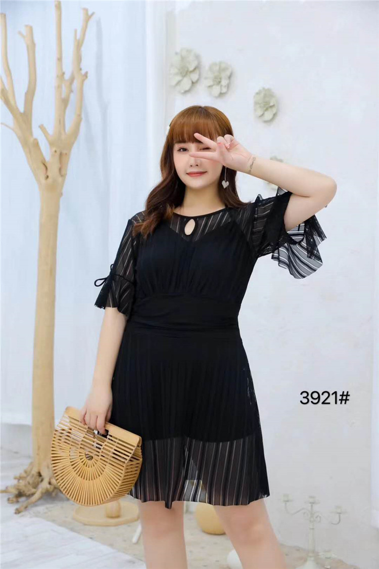 Women's swimsuit plus large 3921 mesh good quality 2020 new women's one-piece swimsuit with belly cover and thin short-sleeved swimsuit