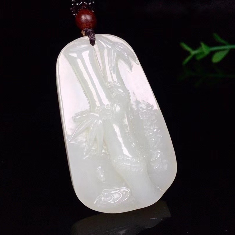 Natural Xinjiang Hetian jade pendant White Jade high jade pendant bamboo jade pendant bamboo Peace jade pendant for men and women