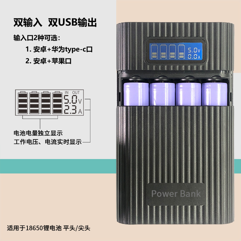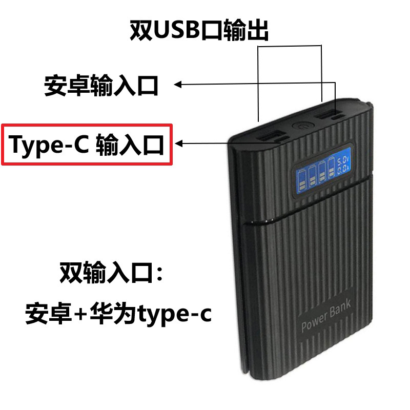 Mobile charging box can be disassembled to replace 18650 battery charger number display screen type-c Huawei input