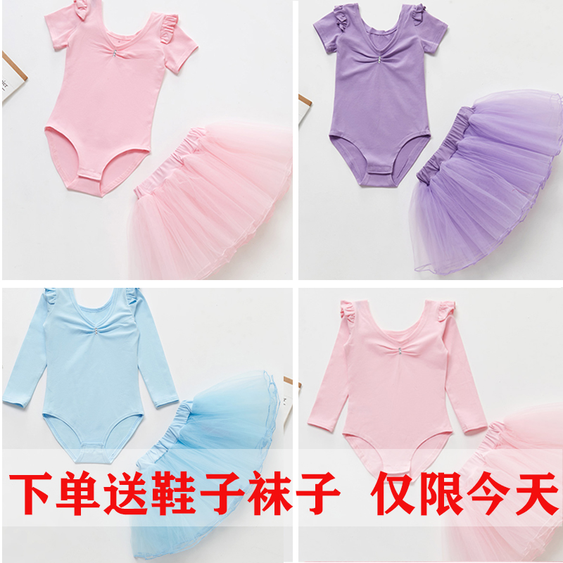 Children's dancing girls rehearssing for girls autumn and winter ballet dancer short sleeve dancing clothes test Chinese dance costumes