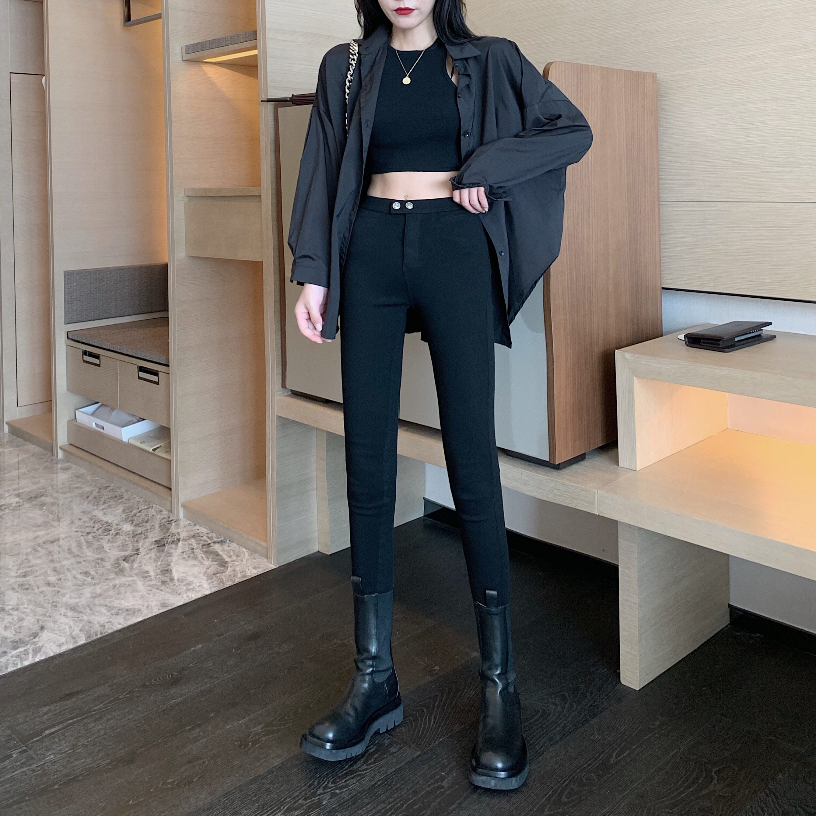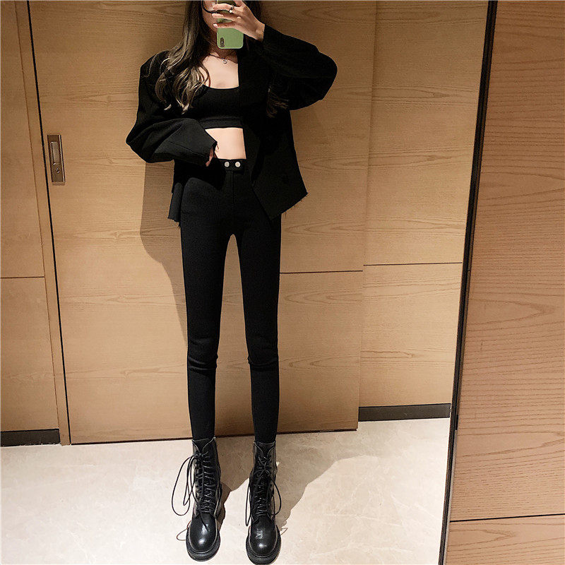 South Korean black magic underpants women wear autumn and winter plus-down high waist thin tights and thick little foot trousers