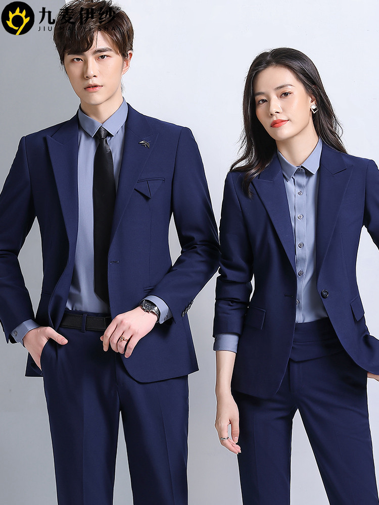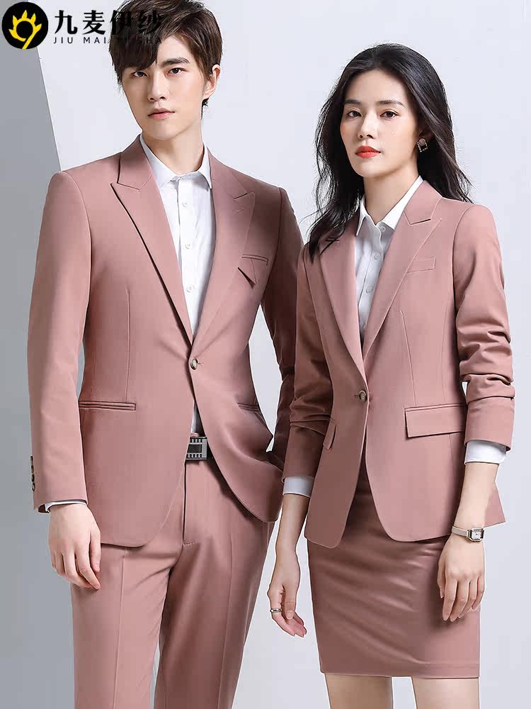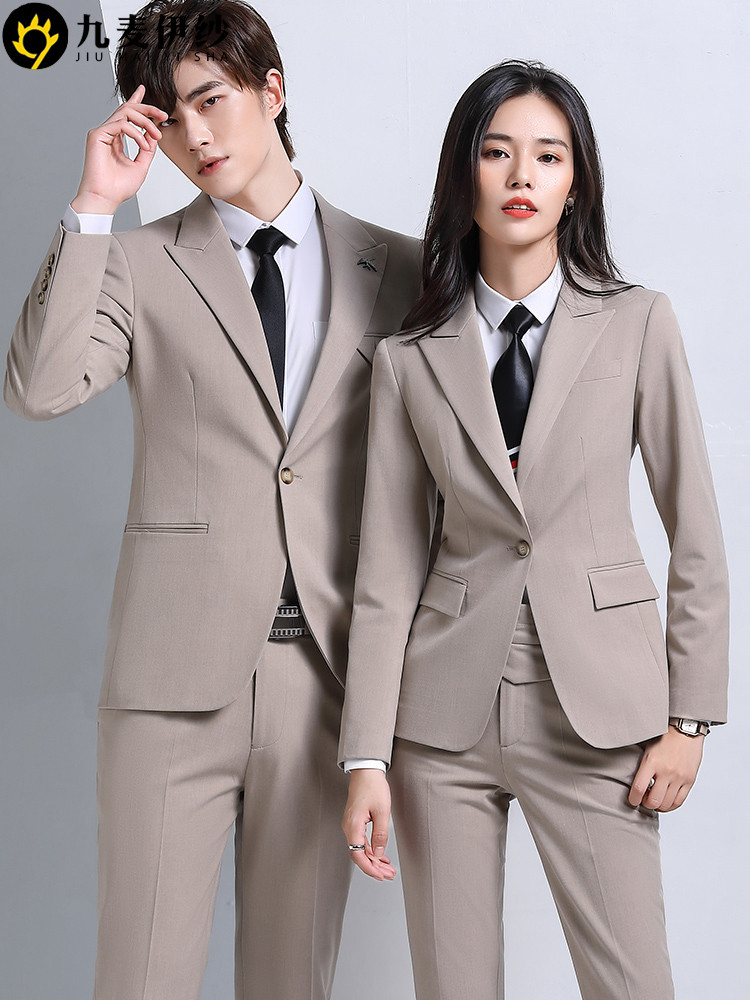 New high-end professional suit suit men and women of the same office white collar assembly and sales building work clothes light gray