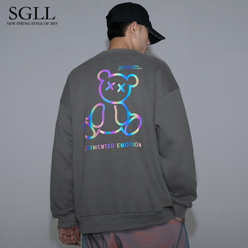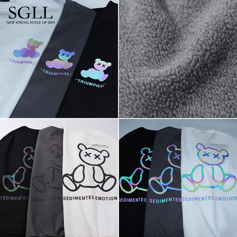 Sweatshirt male autumn winter style lovers round neckline large size small Bear Loose Fried Street Plus Flannel thickened Japanese Tide Card Reflective Jacket