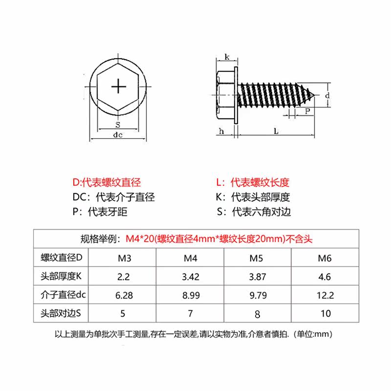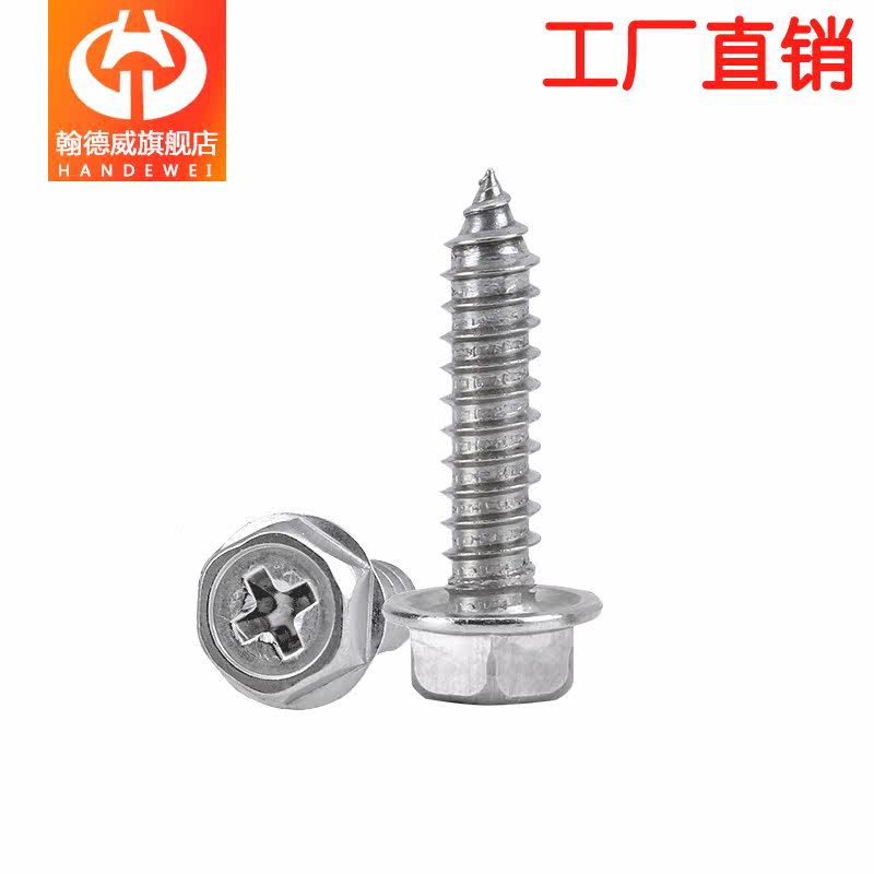 M3M4M5M6 304 stainless steel flange outer hexagonal cross self tapping screw tip tail pointed with pad wood screws