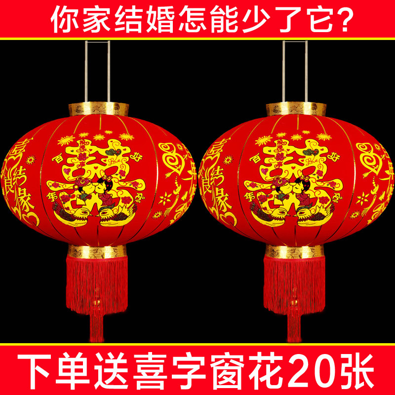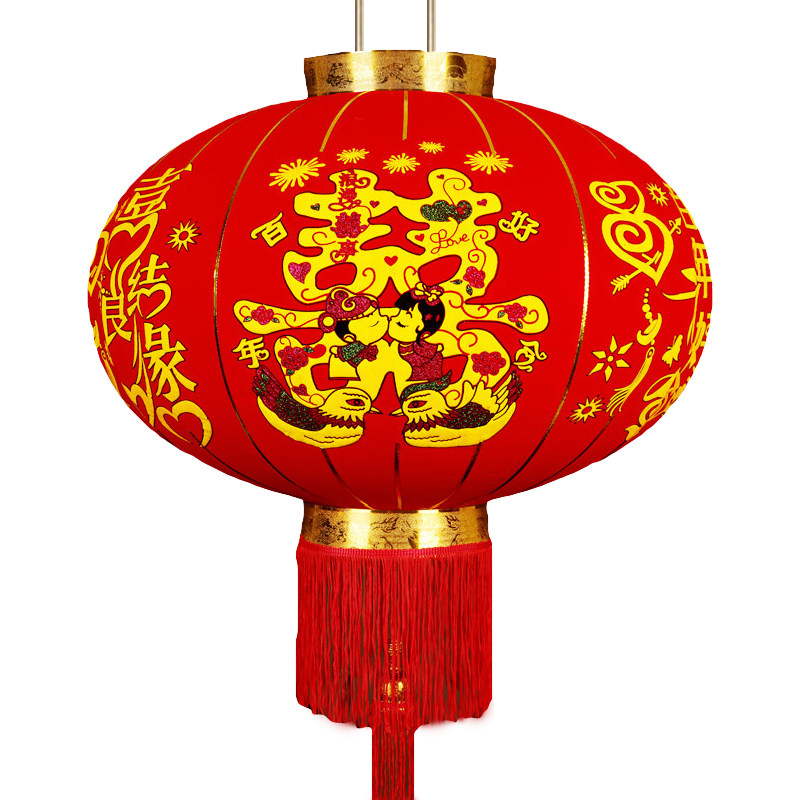 Flocking Buxi Character Lantern Wedding Door Indoor Balcony Large Red Lantern Chinese Style Outdoor Decoration Wedding Dragon Phoenix
