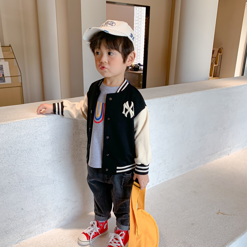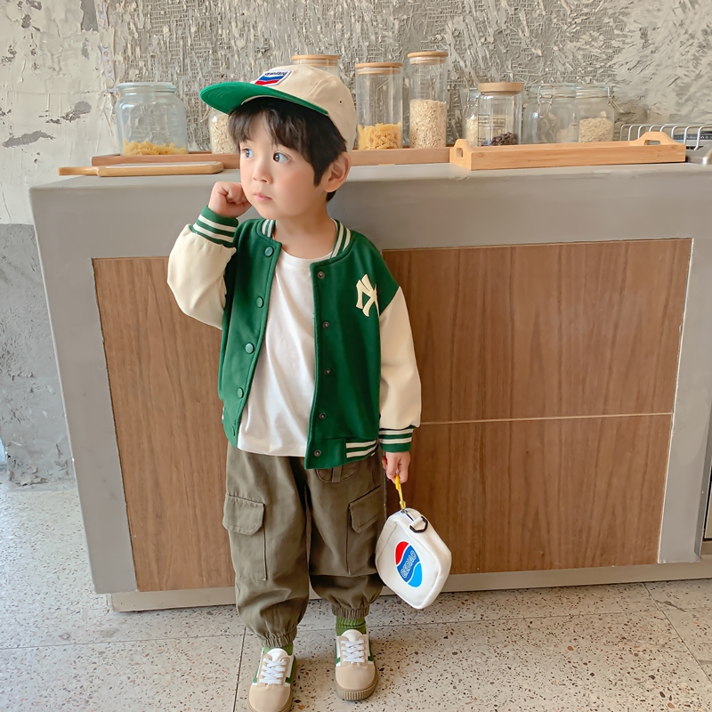 Cute Sprouting Boy Clothing Boy Baseball Jacket Spring 2022 New Children Boy Handsome Gas Jacket Baby Blouse Tide