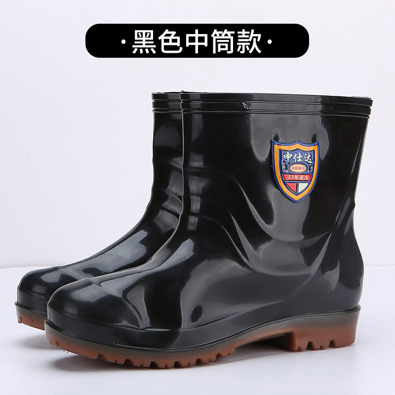 Shenshida brand rain boots waterproof acid-base oil-resistant medium tube low-top short tube wear-resistant non-slip kitchen rubber shoes