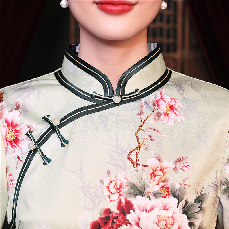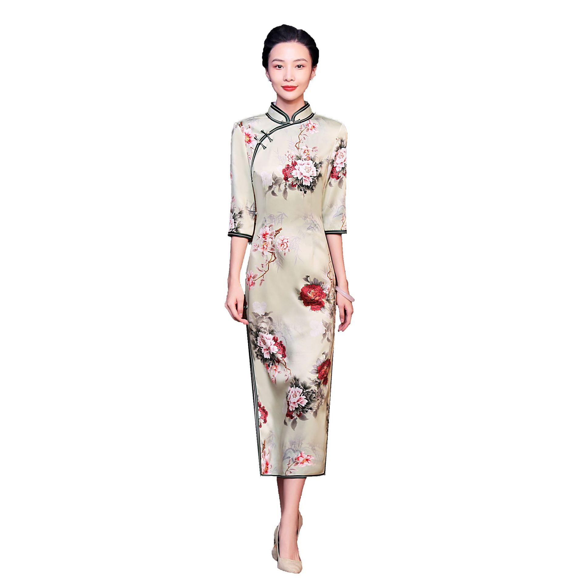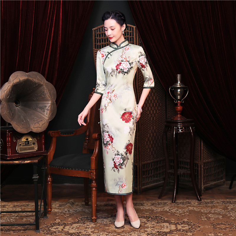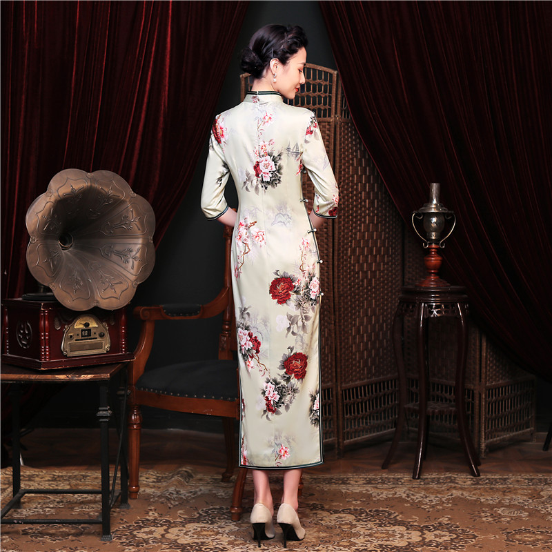 2022 new Chinese wind retro version long version qipao 70% sleeves parents-in-law Banquet Gown Everyday Woman