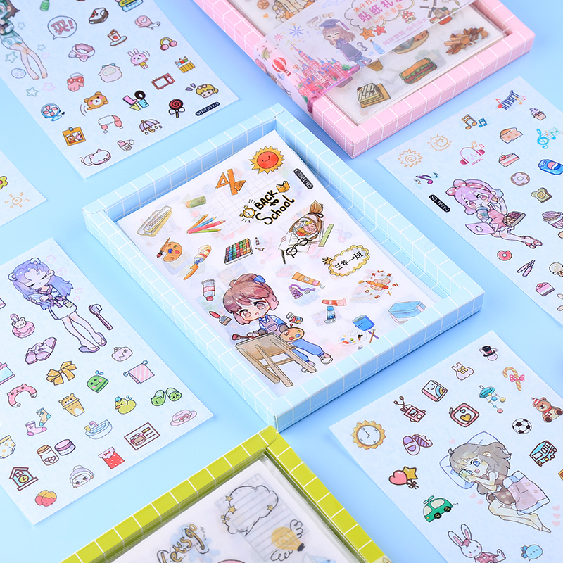 60 pieces of Cute Cartoon Box Loaded Handbill Sticker Big Gift Bag Day Ensemble Young Girl Hearts Ins Wind and Paper Stickers Art Little Fresher Characters Hands Account That Splicing Material Diy Decoration Small Collage-Taobao